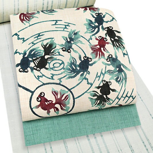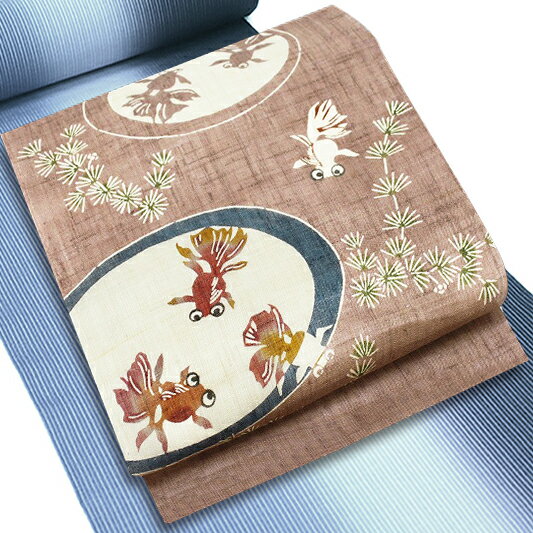 682 麻地 九寸名古屋帯 金魚すくい柄 麻100% 新品未使用 ハイクラスな浴衣や夏大島などの紬、小千谷や上布などの夏着物に合わせて!旅行に!ショッピングや観劇に!女子会、ランチなどのカジュアルなシーンに!