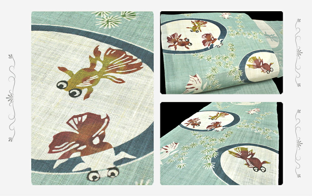 栗山吉三郎 名古屋帯 栗山紅型 和染紅型 紅型染 青緑色 薄エメラルドグリーン 翡翠色 金魚 きんぎょ 金魚すくい 出目金 九寸 麻 手積み 手織り 夏物 新品 未仕立て お洒落着 カジュアル かわいい おしゃれ かっこいい 粋 モダン 涼しい 透け感 東京紅型 江戸紅型 本紅型 琉球紅型 受注生産 No.88-1571 サイズ表 サイズ cm 仕立て可能長さ 〜375cm 幅 通常 ※お仕立ての際、ご希望の寸法がある場合は注文時に必ずご指定ください。