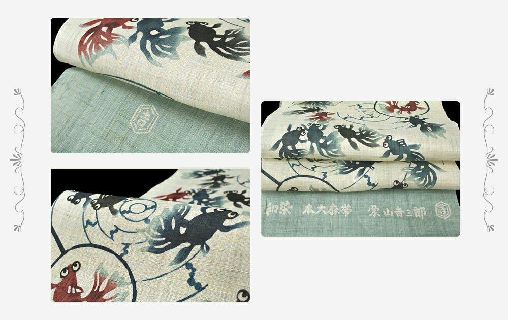 麻帯特有のシャリ感のある生地は 麻の素材感を残した栗山吉三郎さんがこだわって選んだ生地で すーっと風が通り、生地自体にもひんやりとした涼しさがあります。