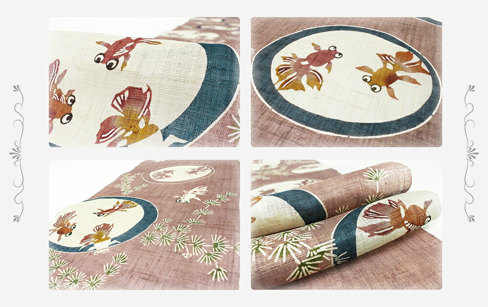栗山吉三郎 名古屋帯 栗山紅型 和染紅型 紅型染 ピンク 金魚 きんぎょ 金魚すくい 出目金 九寸 麻 手積み 手織り 夏物 新品 未仕立て お洒落着 カジュアル かわいい おしゃれ かっこいい 粋 モダン 涼しい 透け感 東京紅型 江戸紅型 本紅型 琉球紅型 受注生産 No.88-1620 サイズ表 サイズ cm 仕立て可能長さ 〜375cm 幅 通常 ※お仕立ての際、ご希望の寸法がある場合は注文時に必ずご指定ください。