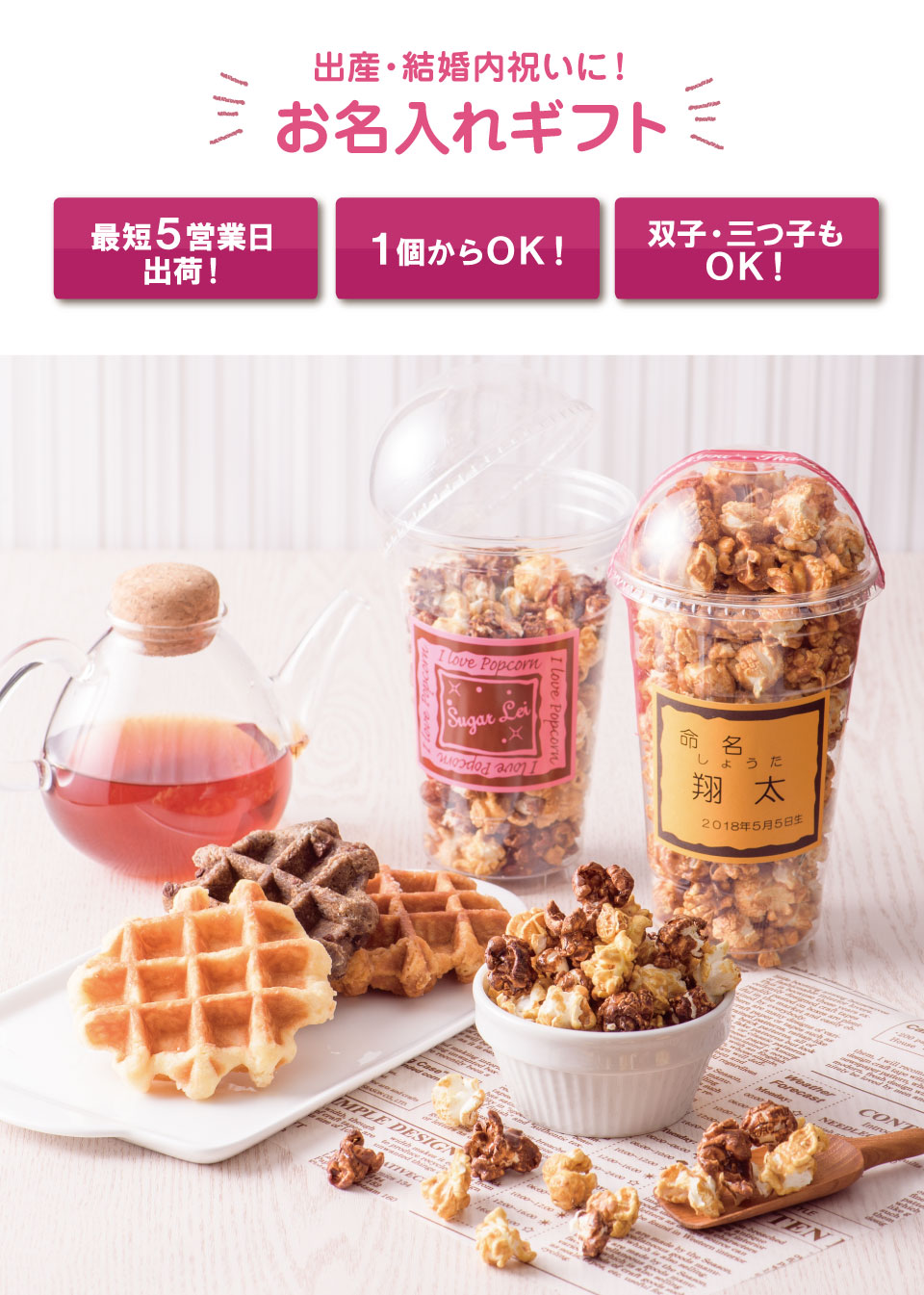 上質なココナッツオイルを使って贅沢に焼き上げたポップコーンと、牛乳とバターをたっぷり使って焼き上げたベルギーワッフルのセット。