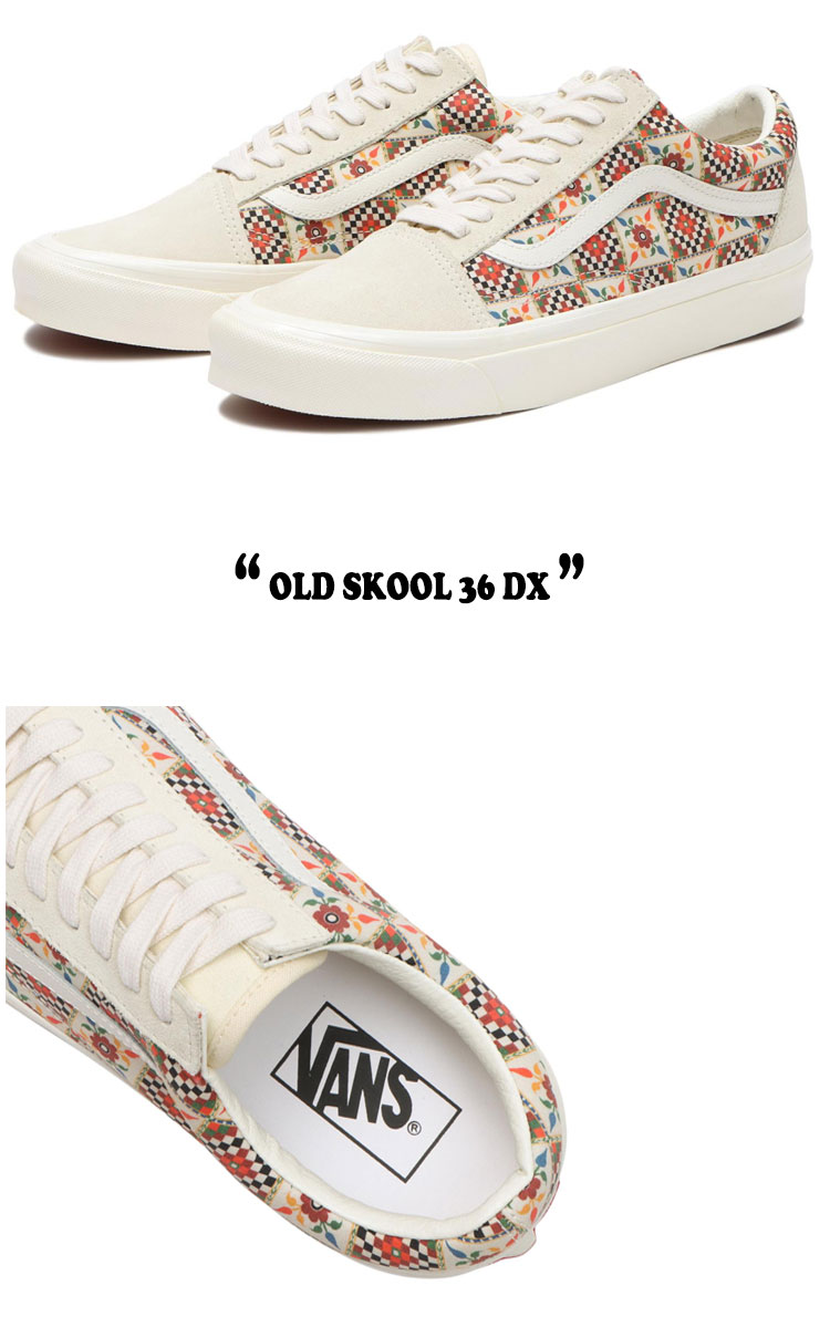 バンズ スニーカー VANS メンズ レディース OLD SKOOL 36 DX オールドスクール 36 DX ANAHEIM CHECKER アナハイム チェッカー ANTIQUE WHITE アンティーク ホワイト VN0A54F3B67 シューズ 1966年に創業した、バンスの初の工場であるアナハイム工場を記念するために作られた「ANAHEIM FACTORY COLLECTION」 今回のモデルはビンテージスタイルのスエードと多彩な花柄タイルのチェッカーボードプリントが特徴です。