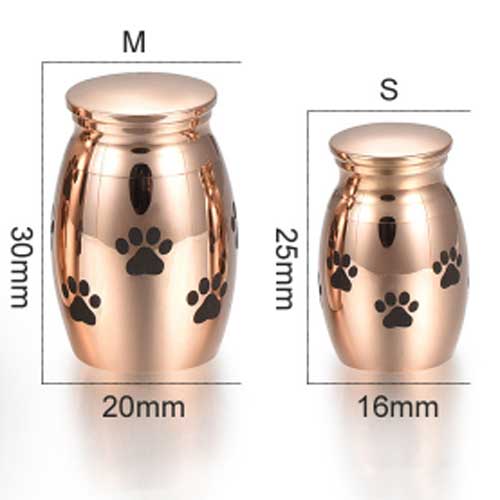 商品名 ステンレス製ペット骨壺 ゴールド(パウ)Mサイズ 商品説明 愛するペットや動物の手元供養のための小さな骨壺です。
