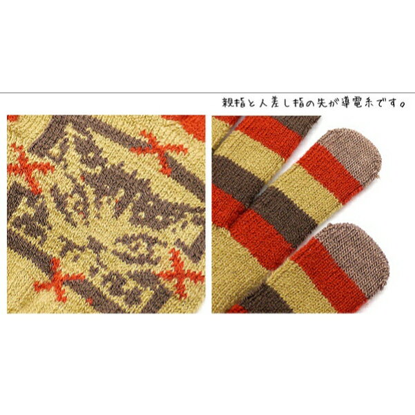 素材・仕様素材:アクリル100% フリーサイズ(約H210×W130mm) 親指、人差し指に導電糸使用特徴しましま指のダヤン手袋。