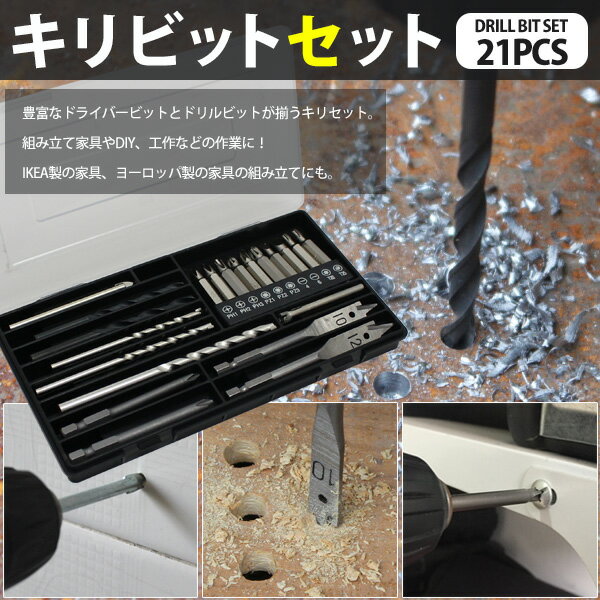 【商品説明】キリ ビットセット 21PCS 豊富なドライバービットとドリルビットが揃うキリセット!組み立て家具やDIY、工作などの作業に。