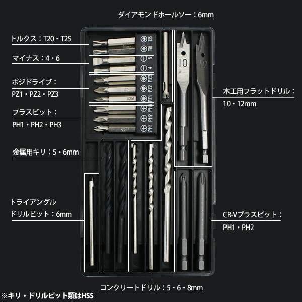 ビットセット 21PCS ドリルビット HSS プラスビット マイナスビット トルクスビット 大工 DIY 工具 インパクトドライバー ドリルドライバー 対応