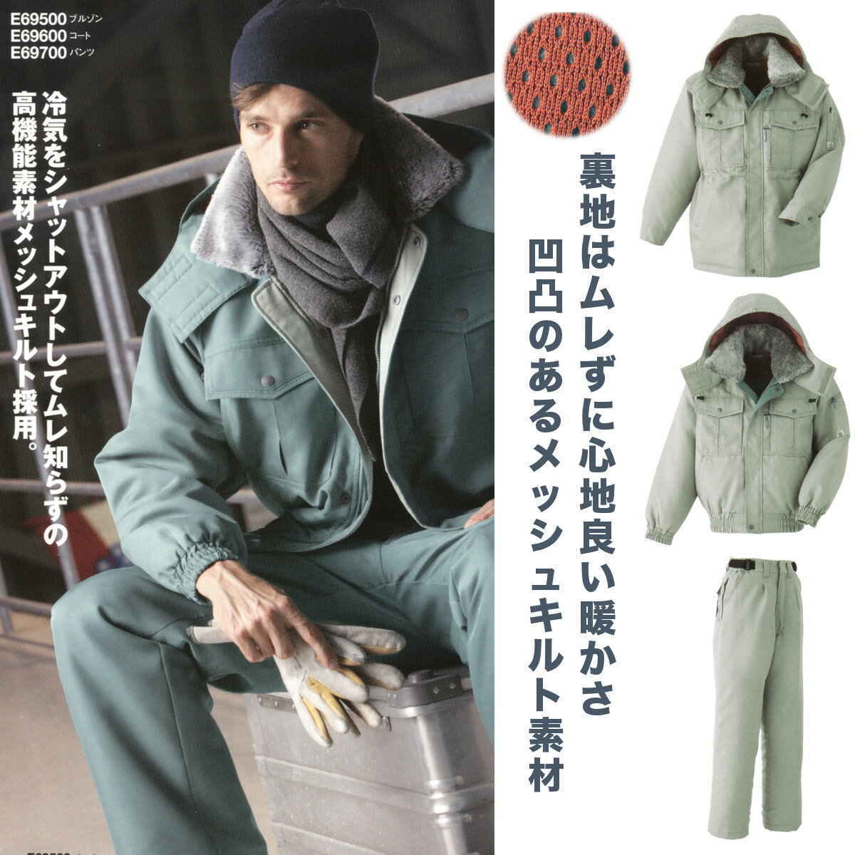 ▼同シリーズ該当商品 E69500シリーズ E69500 E69600 E69700 ▲このページの説明文上端まで戻る▲商品詳細 商品名 防寒ブルゾン(裾シャーリング)【快適防寒エコ商品】防寒着/帯電防止/撥水加工/アウトフード[コート/パンツは別売り] 素材 PETリサイクル繊維/グリーン購入法適合/エコマーク商品/ケミカルリサイクル対応/エコペットツイル/帯電防止・撥水加工/(再生ポリエステル:全体の60%) 裏地:胴裏・メッシュキルト(ポリエステル100%)袖裏:タフタ(ポリエステル100%) 中綿:樹脂綿 サイズ S/M/L/LL/3L カラー オリーブ/ネイビー/リーフグリーン 発売元 旭蝶繊維