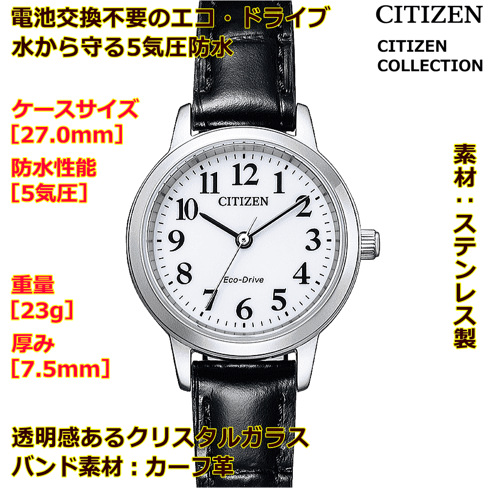 ◆ギフト対応アイコン詳細 ■主な共通特徴CITIZEN CITIZENコレクション エコ・ドライブ 【男性用】 商品詳細ムーブメントエコ・ドライブ(光発電6ヶ月) 精度:±15秒/月サイズ重量:46g 厚み:8.8mmケースケースサイズ【⇔】:38.0mm ステンレス 10気圧防水ガラスクリスタルガラスバンドカーフ革(美錠タイプ)機能充電警告機能 過充電防止機能 秒針停止機能 クイックスタート機能CITIZEN CITIZENコレクション エコ・ドライブ 【女性用】 商品詳細ムーブメントエコ・ドライブ(光発電6ヶ月) 精度:±15秒/月サイズ重量:23g 厚み:7.5mmケースケースサイズ【⇔】:27.0mm ステンレス 5気圧防水ガラスクリスタルガラスバンドカーフ革(美錠タイプ)機能充電警告機能 過充電防止機能 秒針停止機能 クイックスタート機能■ご注意点※ この商品はお取り寄せとなります。