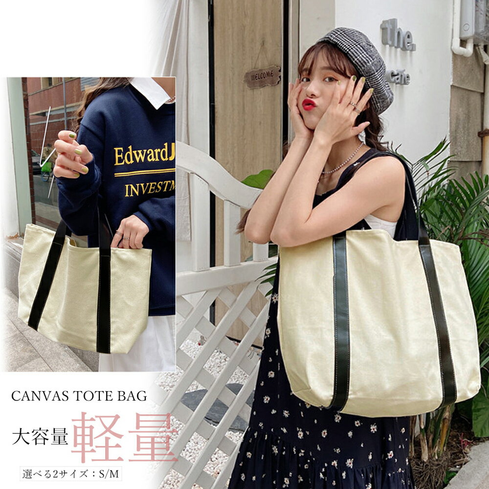 トートバッグ レディース 春夏秋冬 持ち手レザー 大容量 肩掛け ズック 2種類の大きさ