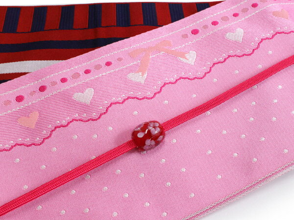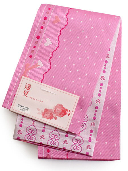 帯 3点セット ピンク ハート 赤 縞 半幅帯 赤 帯飾り レディース 女性 半巾帯 細帯 浴衣帯 リバーシブル 大人 ポリエステル 着物 洒落 和装 和服 レトロ チウ