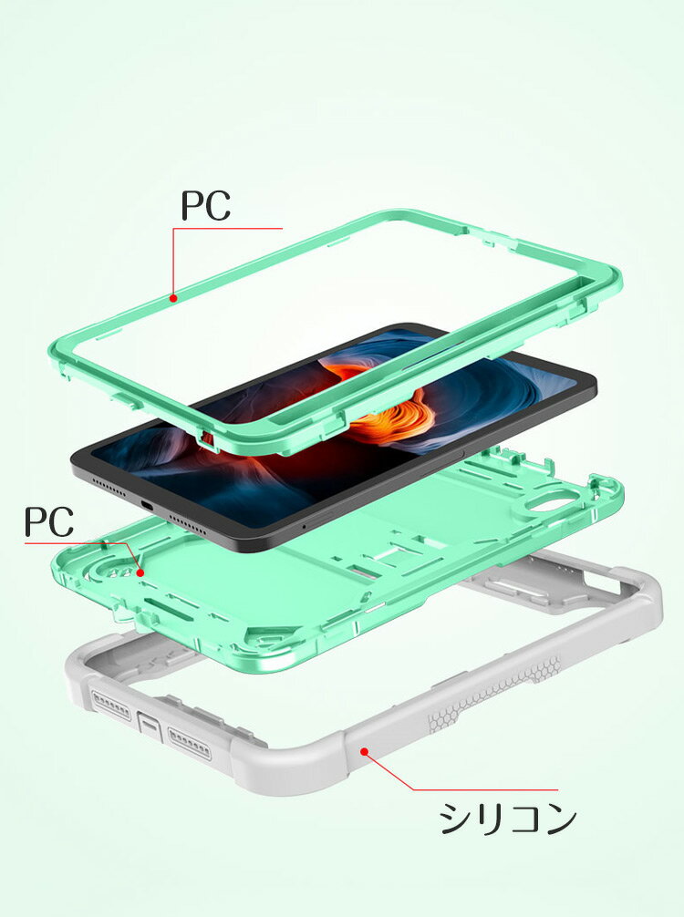 送料無料 Apple iPad mini 6 2021モデル 第6世代 タブレットケース アップル CASE 薄型 傷やほこりから守る 耐衝撃 2重構造 PC&シリコン素材 スタンド機能 おしゃれ カバー ケース 全面保護 人気 背面カバー ■梱包内容:ケース×1 ■【仕様】 ■対応機種 : Apple iPad mini 6 2021モデル ■材質:シリコン+PC ■カラー:ブラック、ピンク、レッド+ブラック、グレー+グリーン 【高品質シリコン】エッジ 高品質のシリコンは、優れたシリコン材料を採用し、柔軟に変形しない、耐衝撃、指紋の汗を防ぎ、触感が良好である。