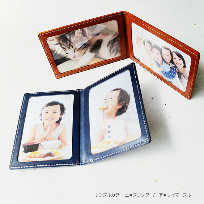 ●「タテ長」、「ヨコ長」よりタイプを選択できます [手作り][オリジナル][日本製][革][レザー][牛革][皮][小物][贈り物][ギフト][プレゼント][父の日][母の日][還暦][ホワイトデー][バレンタイン][柔らか素材][プレゼント][レザーケース][レザーカバー][フォトフレーム][北欧]●素材:牛革 国産最高峰タンナーである栃木レザーの本格ヌメ革「アニリンレザー」 を使用した【L版サイズ用】フォトフレームです。
