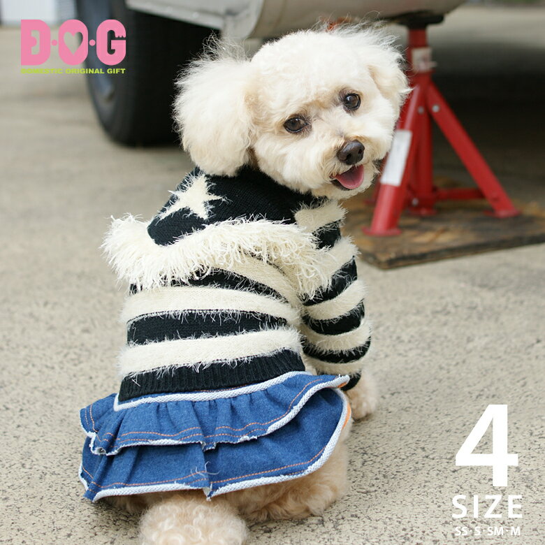 【OUTLET】【アウトレット】ドッグウェア D・O・G ストレッチデニム 伸縮性あり シャギーニット フリンジセーター×デニムスカート