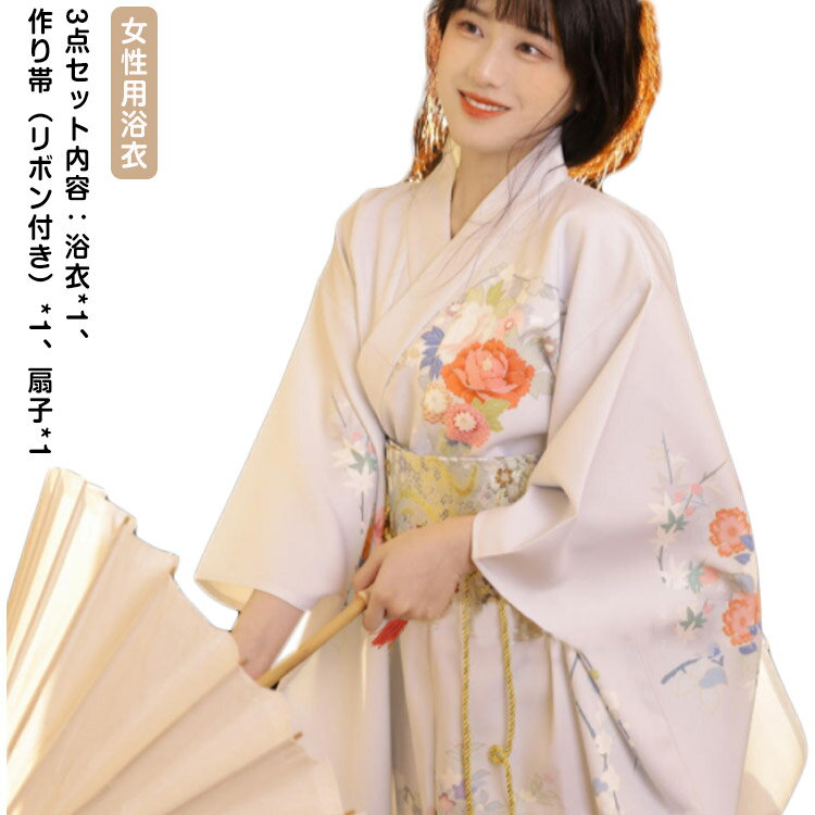 レディース 京都 浴衣 3点セット 洗える お稽古 可愛い yukata 街着 女性 レトロ ショッピング 文化祭 夏 花火 花柄 上品 セット 花見 婦人 お出かけ グレー 大柄 花 ゆかた