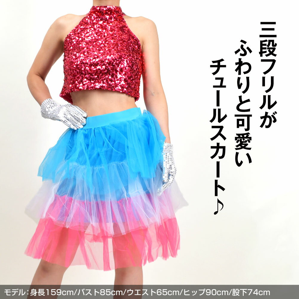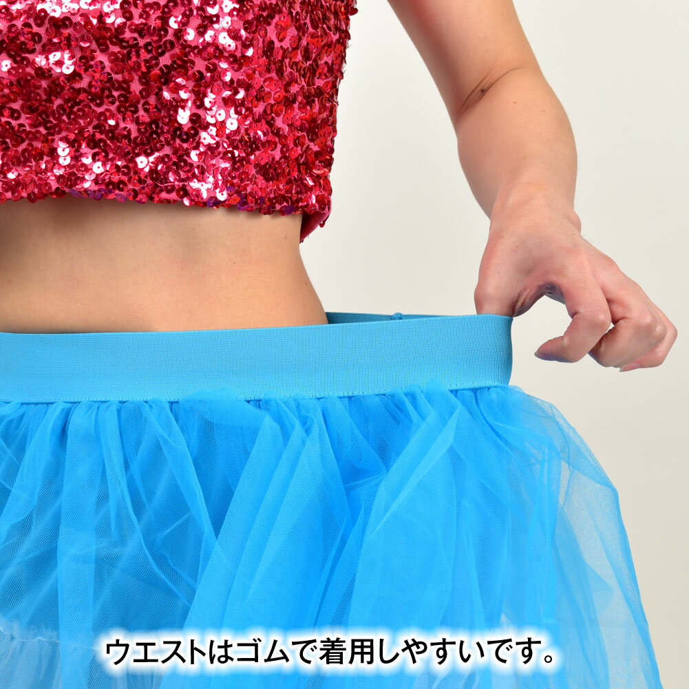 ダンス衣装 ステージ衣装 チュールスカート ダンス衣装 ジャズダンス バーレスク チュチュ ミニスカート ボリューム コスプレ 仮装 PD90919 レディース ストレッチ素材 3段フリル/ショート丈/3色 ウエストゴム A(BL) フリー 【楽ギフ_包装】 [M便 1/2]