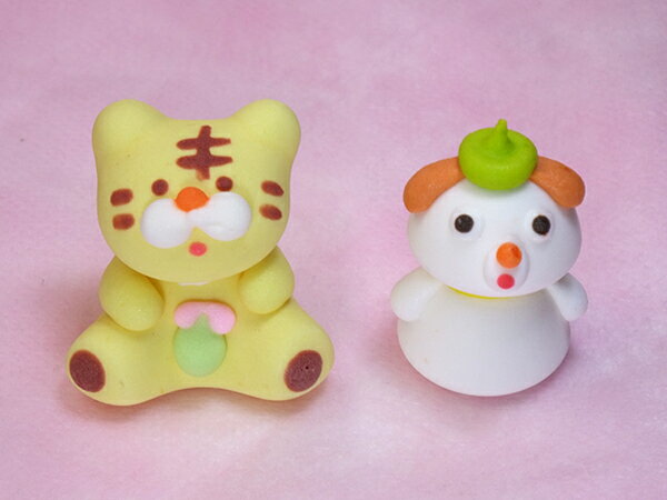 「メレンゲ動物飾り」セット(うさぎとトラ) 【セットの内容】「メレンゲ動物」2体(うさぎとトラ) 名 称:砂糖菓子 原材料名:砂糖菓子部:砂糖、水飴、澱粉、コーンスターチ、ゼラチン/着色料(赤102、赤106、黄4、 黄5、青1) 保存方法:直射日光・高温多湿を避け冷暗所に保存