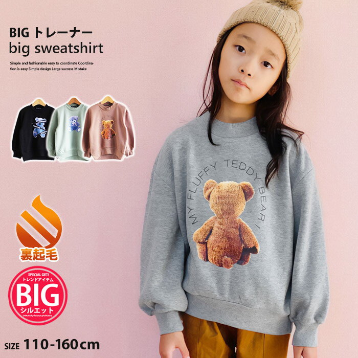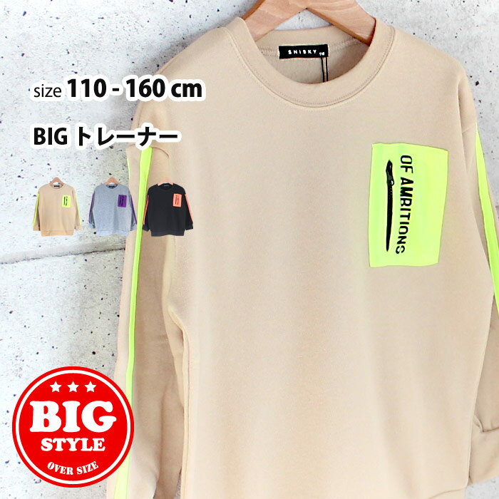 【送料無料】キッズ 子供服 トレーナー トップス クルーネック ビッグ BIG 男の子 女の子 ボーイズ ガールズ プリント 裏起毛 ミラープリント ロゴ ジュニア ダンス カジュアル 110cm 120cm 130cm 140cm 150cm 160cm 「440-08」