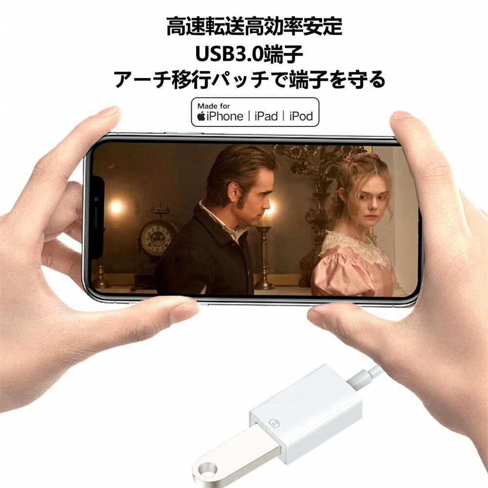 ●【応用環境】挿入することで、写真、ビデオ、音楽、PDF、Wordなどのフィアルを、USBやデジカメなどからiPhoneやiPadに転送することができます。