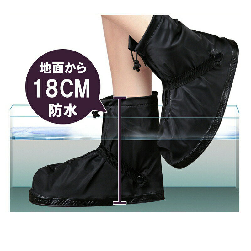 靴を水、泥などから守るレインシューズカバー 地面から18cm防水 靴の上から履ける防水加工を施したシューズカバーです。