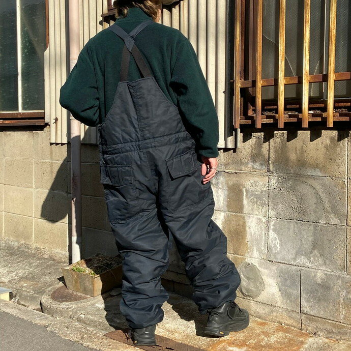 ビッグサイズ 80年代 民間品 ミリタリー デッキパンツ シンサレート キルティングライナー オーバーオール メンズW44 古着 80s ビンテージ ヴィンテージ ネイビー 紺色 大きいサイズ【ロングパンツ】 ◎U.S.NAVYのデッキパンツのようなビジュアルですが、詳細不明な一本。