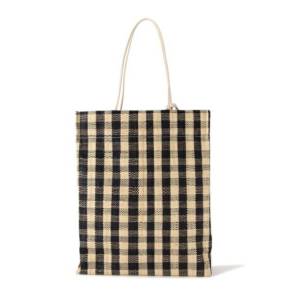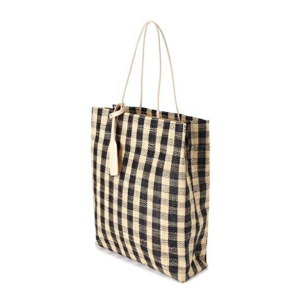マダガスカルで手織りで作ったラフィア生地を本体に使用したショッパーバッグ型のトートバッグ。