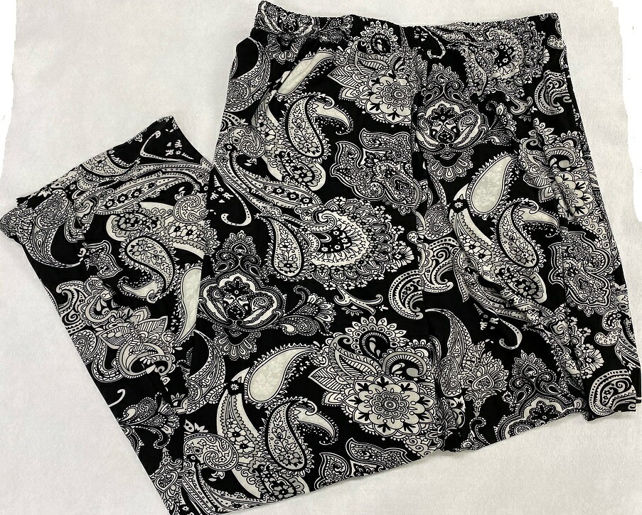 9分丈 ワイドパンツ ストレスフリー 家でも、ちょっとしたお出かけにも ポリエステル・ポリウレタン ペイズリー柄 黒色
