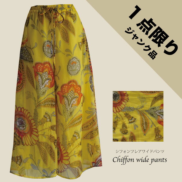 【ジャンク品】ワイドパンツ シフォン 柄バリ エスニカル(JUNK-8)