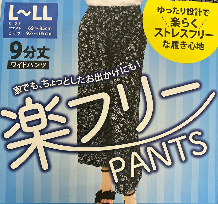 ストレス・フリーパンツ 9分丈 ワイドパンツ M~L(ウエスト64vm~77cm・ヒップ87cm~100cm) L~LL(ウエスト69vm~85cm・ヒップ92cm~105cm) ポケット付き 股上深め(しゃがんでも背中がでにくい) こだわりのワイドタイプストレス・フリーパンツ 9分丈 ワイドパンツ M~L(ウエスト64vm~77cm・ヒップ87cm~100cm) L~LL(ウエスト69vm~85cm・ヒップ92cm~105cm) ポケット付き 股上深め(しゃがんでも背中がでにくい) こだわりのワイドタイプ