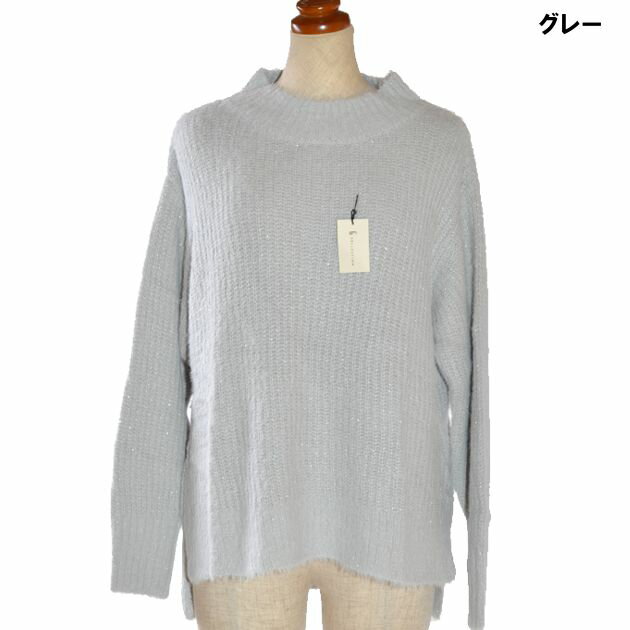 アウトレット!フェザーラメニットセーター とっても柔らかでふわふわの手触りのフェザーニットのクリーネックセーター♪