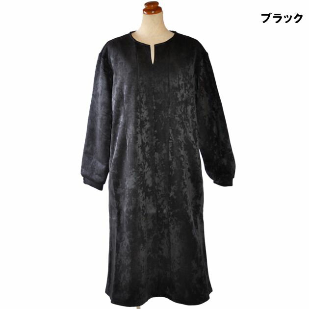 スウェード調 ワンピース アウトレット 長袖 ストレッチ ドロップショルダー 袖ゴム ゆったり ポケット付 おしゃれ カジュアル 大人 可愛い 秋 冬 秋服 冬服 大きいサイズ ロング丈 M L LL 3L 黒 ブラック 677726