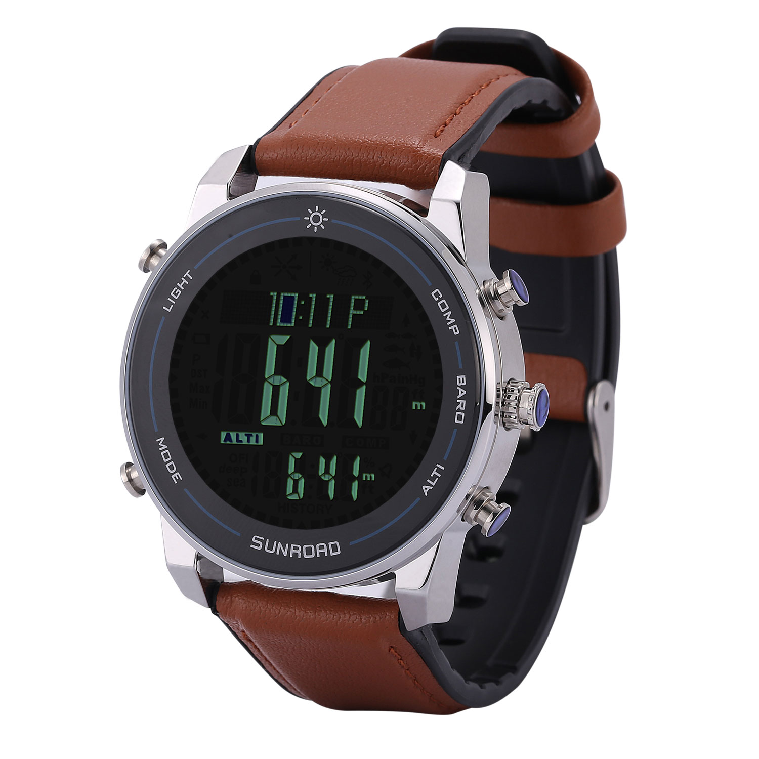 気圧・高度計などを備えたマルチ・フィッシング・ウォッチ時間機能:時、分、秒、年(2010-2099)、月、日付、平日、12H / 24H釣り指数表示、魚の動きの傾向の表示目覚まし時計(2セット目覚まし時計)カウントダウンタイマー(99:59:59〜0)ストップウォッチ(0〜99:59:59)日の出と日の入りの時間表示コンパス、高度計、気圧計、温度計、気圧トレンド、高度トレンド48時間の気圧トレンドチャート合計ゲイン/ロス高度の記録と最高点と最低点の記録デジタルコンパス:16方位角ディスプレイバッテリー寿命リマインダーELバックライト11気圧防水 気圧測定範囲 300hpa - 1100hpa 気圧分解能 0.1hpa 気圧トレンド 過去24時間の気圧変化を記録 気圧トレンド予測 今後24時間の気圧変化を予測 釣り指数インジケーター 搭載 魚層分析 搭載 魚の活動傾向指標 搭載 高度測定範囲 700m - 9000m 高度分解能 1m 高度測定方法 海抜・上昇高度 温度測定範囲 -20°C - 60°C 温度分解能 1°C 天気予測 今後12時間から24時間の天気予報 天気の種類 快晴・晴れ・曇り・雨 時計 12時間制及び24時間制 日の出日の入り 搭載 活動時間記録 対応 バックライト ELバックライト 防水レベル 5気圧防水 重量 47g サイズ 45 x 11mmSUNROAD フィッシングウォッチ FR861N Brown