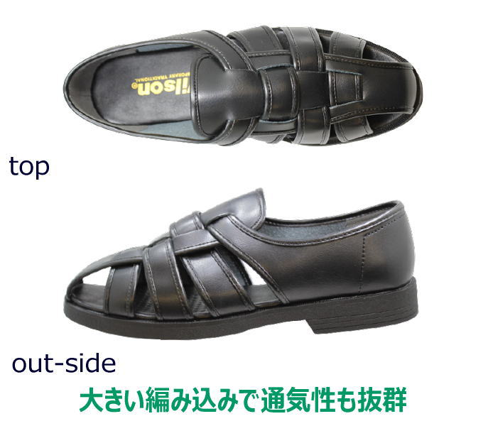 Wilson(ウィルソン)職場履き サンダル メンズ オススメ オフィスシューズ オフィスサンダル メッシュサンダル メンズ用(男性用)会社 オフィス 社内 中国製 3E 黒(ブラック) Wilson 3600節電対策/クールビズにもおすすめのメッシュシューズ。