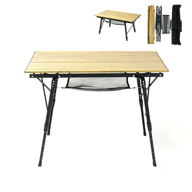 アウトドアテーブル 折りたたみ レジャーテーブル アルミ 木目調 ロールテーブル コンパクト 高さ調整可能 軽量 ピクニックテーブル キャンプ アウトドア ピクニック バーベキュー 【沖縄・北海道・離島配送不可】