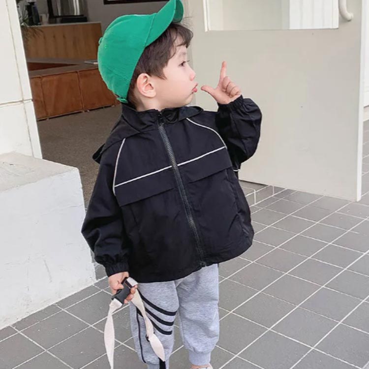 ベビー ジャケット 男の子 トップス アウター ジャンパー 羽織り 上着 フード付き キッズ フード付き ブルゾン ジップアップ 110 子供服 ウィンドブレーカー グレー 90 100 140 120 130 ブラック