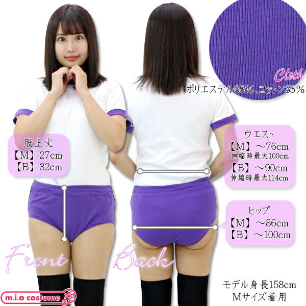 2〜3営業日にて出荷 ●サイズ● 【Mサイズ】 W:〜76cm(伸縮時最大100cm) H:〜86cm ブルマ 股上丈:27cm 【BIGサイズ】 W:〜90cm(伸縮時最大114cm) H:〜100cm ブルマ 股上丈:32cm ●セット内容● ブルマ単品 ●素材● ポリエステル65%、コットン35% ●色● 色は写真と同じものになります。