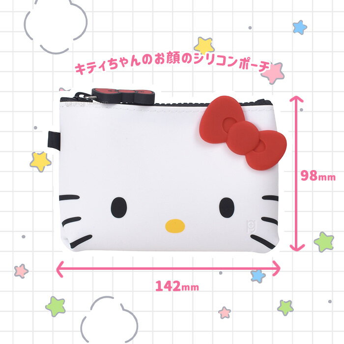 ≪ハローキティ≫NUU-Small シリコンポーチキティちゃんのお顔がプリントされた、ハンドサイズのジッパーポーチ ヘアアクセサリーや、目薬・ばんそうこう、お薬などを入れるのにおすすめのサイズです。